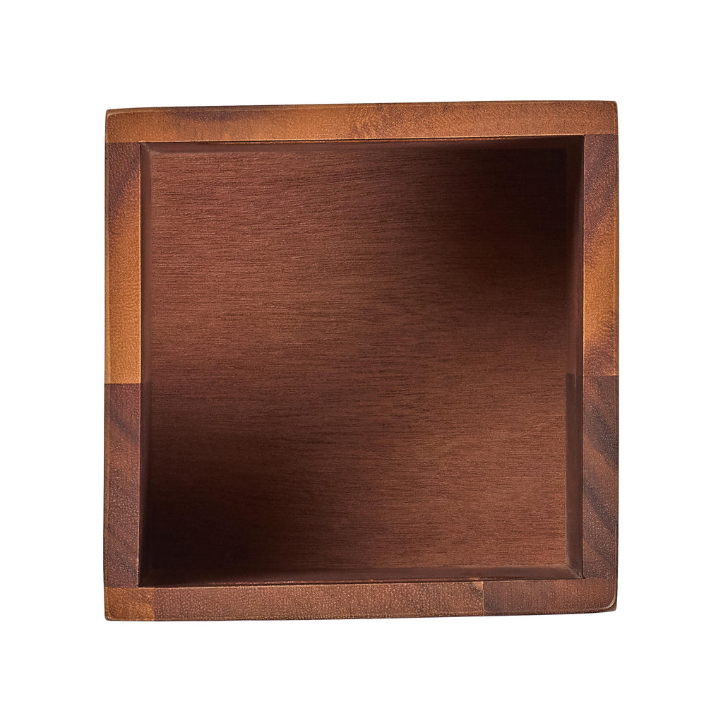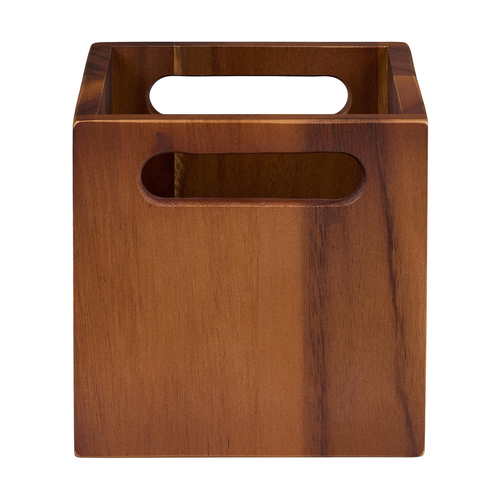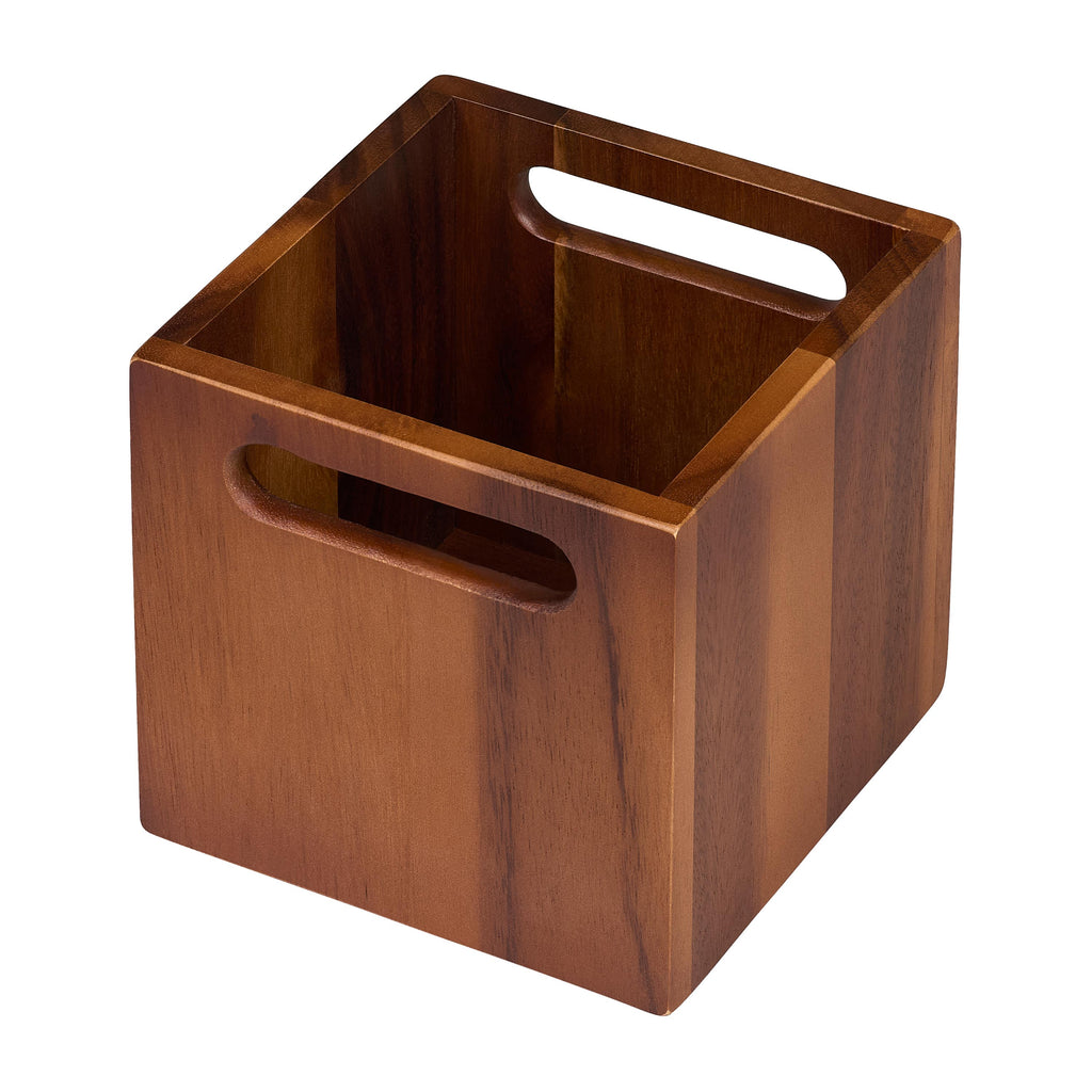 Tala Lacquered Acacia Square Cutlery Box w 2 Carry Handles 145x145x145mm