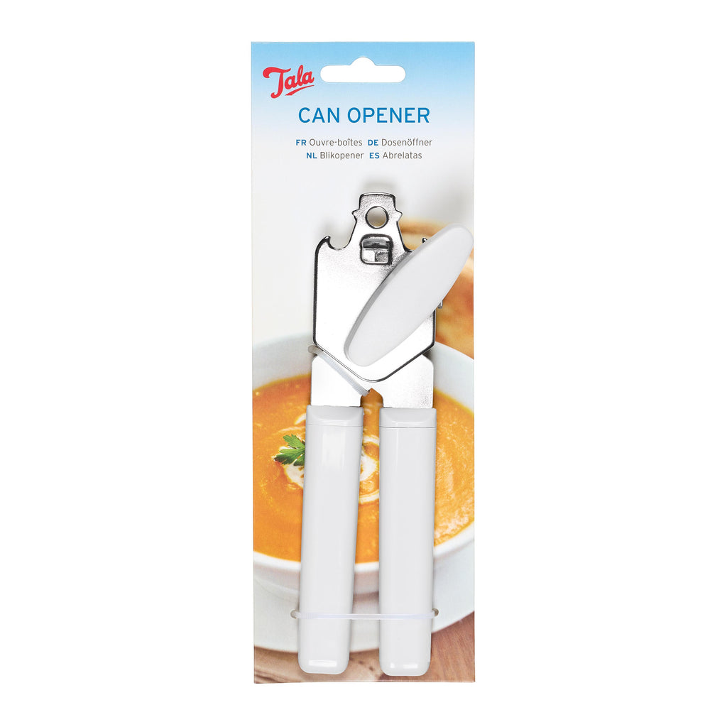 Open cans effortlessly with our Tala Can Opener. It is made fromstainless steel and plastic for added durability. An absolute must in anyhousehold our can opener is a durable and effective kitchen tool for everydayuse.